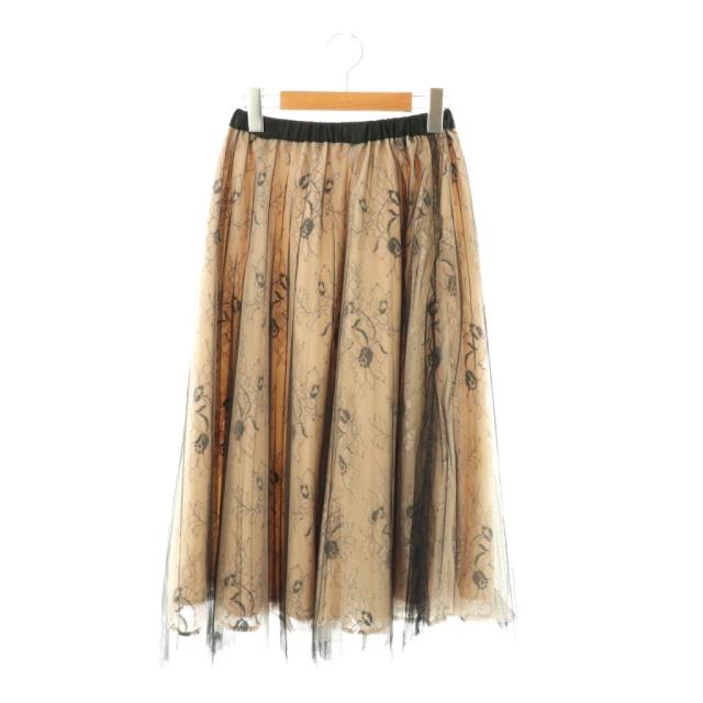 【中古】ノエラ Noela ボリュームチュールスカート ギャザースカート フレア ブラック ベージュ /ES レディース