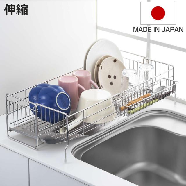 水切りラック シンクサイド 幅の広がる水切り 深型 奥行57cm ( 水切りかご 水切りトレー シンク上 スリム ステンレス 水切り シンク横 日本製 伸縮 おしゃれ コンパクト シンク 大容量 少量 ステンレス水切り ディッシュラック )