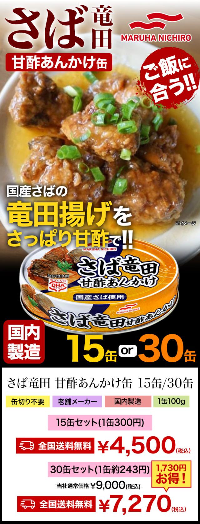30缶 マルハニチロ さば竜田 甘酢あんかけ缶 サバ 鯖 たつた タツタ お惣菜 缶詰 かんづめ 防災 非常食 備蓄 缶切り不要 プルトップ缶 満足良品館 送料無料
