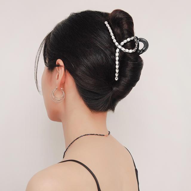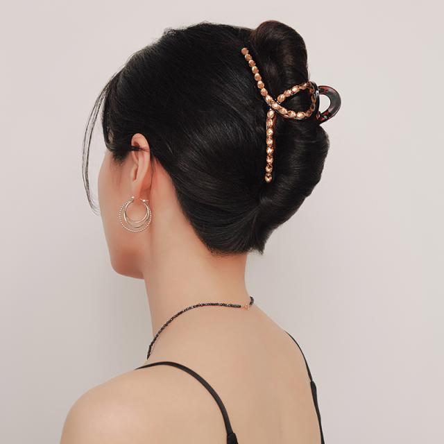 洗練されたフォルムに、きらめくクリスタルが贅沢にあしらわれたリボンモチーフのヘアクリップ。