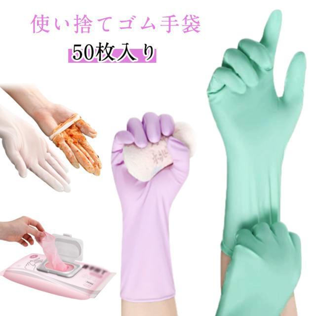 ゴム手袋 50枚入 使い捨て ニトリル手袋 ロングタイプ ニトリルグローブ 耐油性 粉なし 薄手 使い捨て手袋 ニトリルゴム手袋 使い切り手袋 伸縮性 破れにくい 作業用 業務用 掃除 美容 家事用 家庭菜園 使い捨て手袋 丈夫 食品加工 厨房