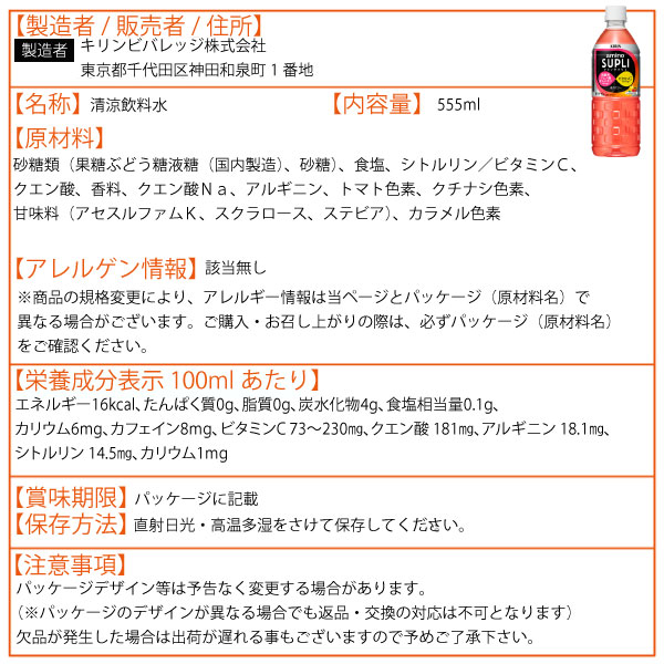 キリン×ファンケル アミノサプリ プラス 555ml 24本 (24本×1ケース) ペットボトル アルギニン シトルリン ビタミンC クエン酸 レモン アセロラ 清涼飲料水 低カロリー PET
