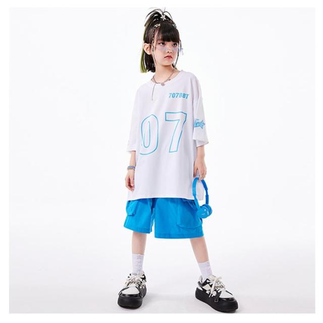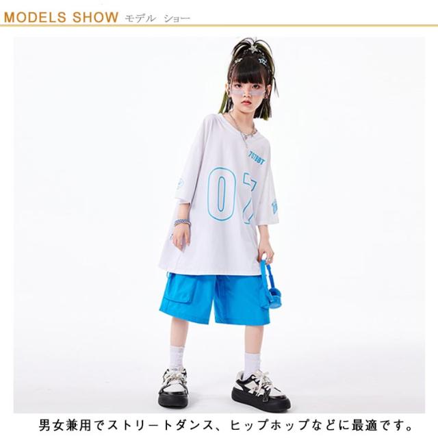 キッズ ダンス衣装 セットアップ ヒップホップ 韓国 子供服 男の子 女の子 ダンス 練習着 キッズ セット 子供 ダンス 衣装 jazz K-POP おしゃれ Tシャツ 半袖 ハーフパンツ 青 白 キッズダンス 体操服 チア オシャレ 原宿系