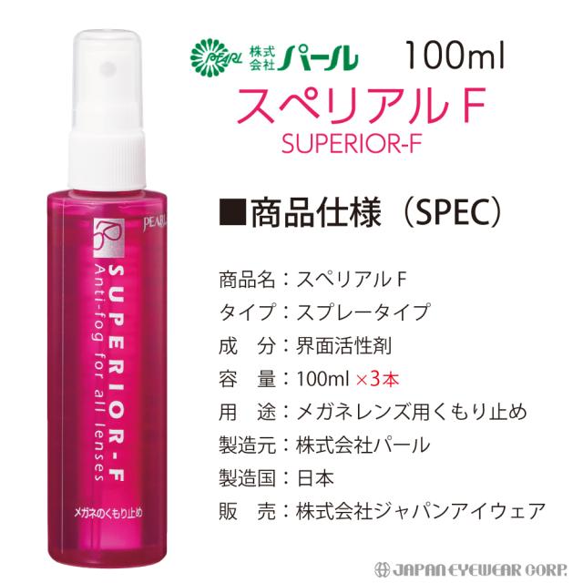 くもり止め 曇り止め スプレー メガネ 眼鏡 マスク パール 3本セット くもり止め スプレータイプ 100ml スぺリアル-F(M) 3個セット レンズ ケア メガネのくもり止め 曇止め メガネクリーナー PEARLレンズ 汚れ くもりどめ