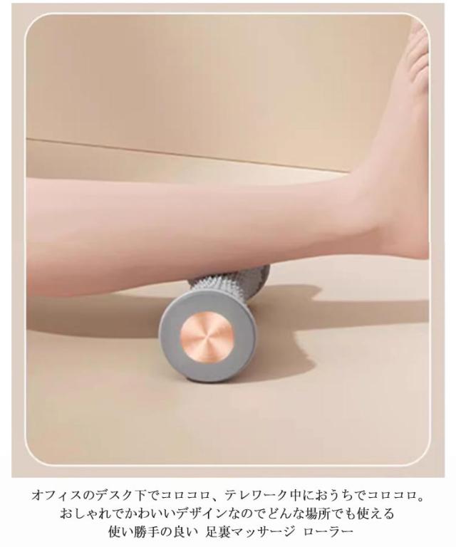 | 足裏マッサージローラー。 足底の経絡を刺激して・疲労回復 扁平足・土踏まずの低下・むくみ対策にぴったり! 足裏・足弓・踵・ふくらはぎまで全方位ケア コロコロ転がすだけで手軽にマッサージ♪ 運動後の筋膜リリースや足部リハビリにも◎ 高品質のTPR素材を採用した 足裏マッサージ 用 フットローラー。 ゆっくり足裏をコロコロ、強く踏みこんでゴリゴリ。ちょうどいい感じに足つぼを刺激するフットケアの決定版。 足裏や土踏まずはもちろん、ふくらはぎ ふともも 二の腕など様々な箇所のマッサージに最適です。 弾力性のある突起部分は5mm。突起が足裏のつぼを刺激します。 環境に優しく安全!TPR素材なので環境に優しく安全で無臭。お手入れも簡単。 オフィスのデスク下でコロコロ、テレワーク中におうちでコロコロ。 おしゃれでかわいいデザインなのでどんな場所でも使える 使い勝手の良い 足裏マッサージ ローラー プレゼント にも最適! 誕生日 はもちろん 母の日 父の日 敬老の日 に、 健康グッズ の プレゼント ギフト としても最適です。 おしゃれ で かわいい デザインなので、部屋やオフィスなど、どこにでも置いておけます。 | |