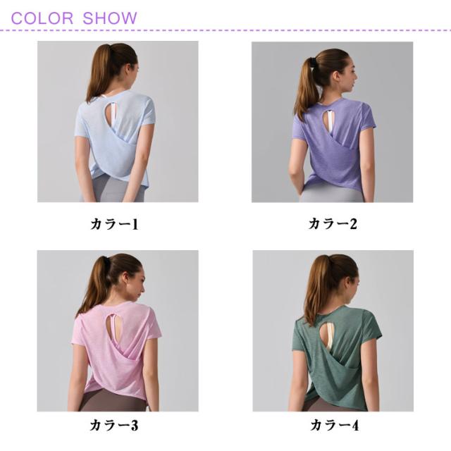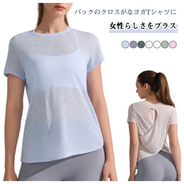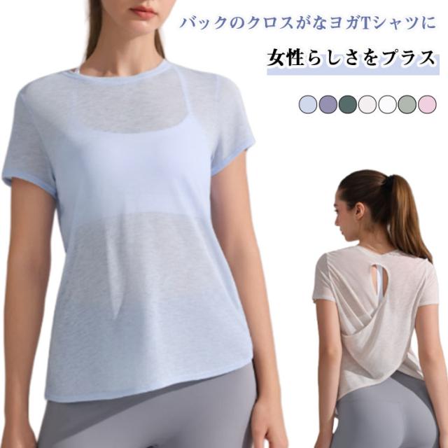 バッククロス ヨガウェア トップス レディース 半袖 Tシャツ ホットヨガ バックオープン 韓国 ホットヨガウェア フィットネスウェア 吸汗速乾 軽量 ピラティス S M L XL