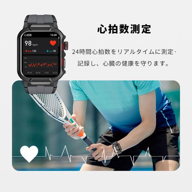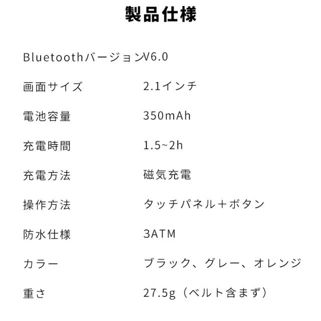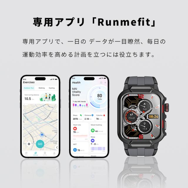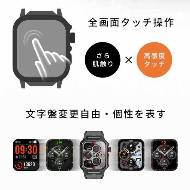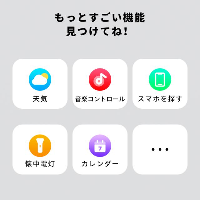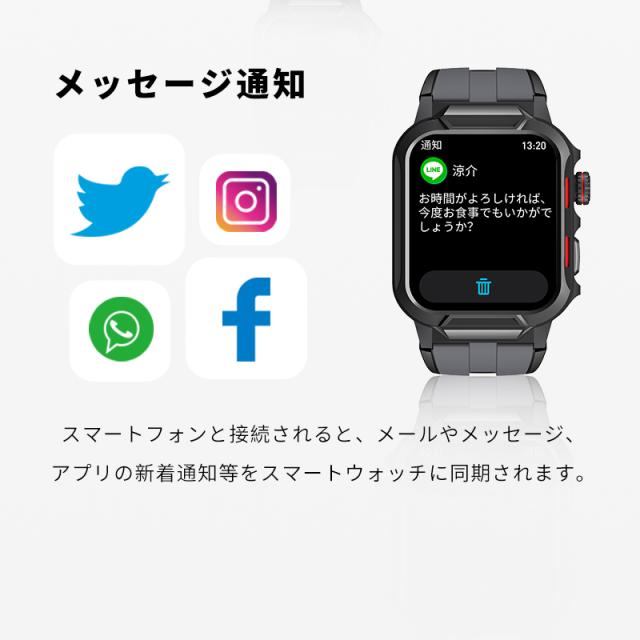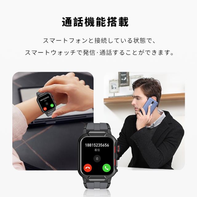着信やメール、SMS、SNS、アプリなどの通知を即時に表示する機能付き、重要なメッセージを見逃しません。また、本体には、スピーカーが搭載、着信通知だけではなく、Bluetooth通話も対応します、スマホを取り出さず、ウォッチで通話可能です。更に、Bluetooth接続すると音楽再生/一時停止/曲切り替えなどの機能がウォッチ本体で操作できます。