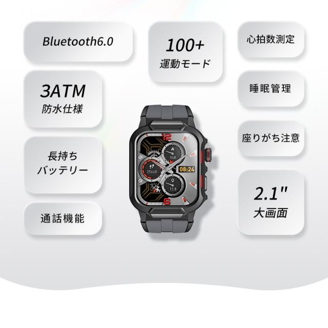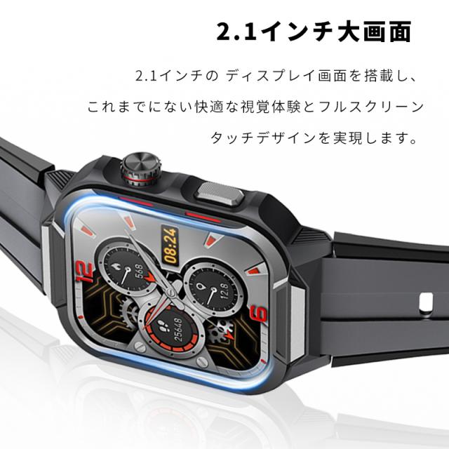 スマートウォッチ 通話機能付き 2.1インチ大画面 腕時計 Bluetooth 6.0 消費カロリー スマートブレスレット マルチ運動モード 3ATM防水 心拍数測定 血圧・血中酸素濃度測定 iPhone/Android適用 着信/Twitter/Facebook/LINE/メッセージ通知【PL保険加入済み製品・安心】