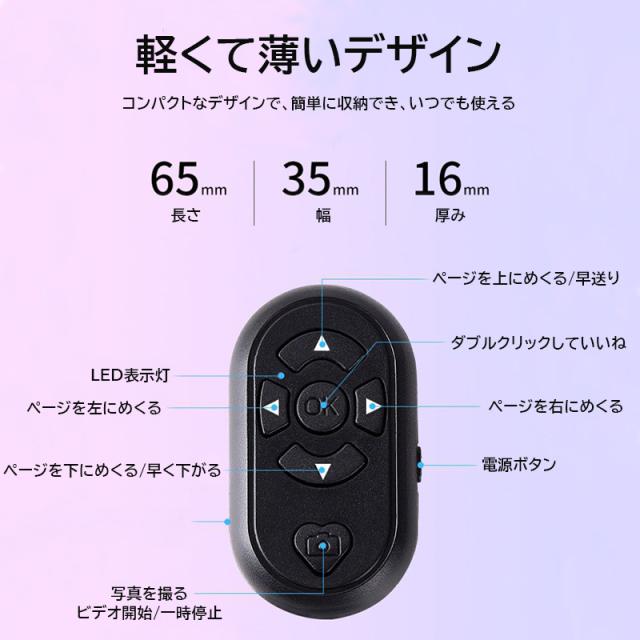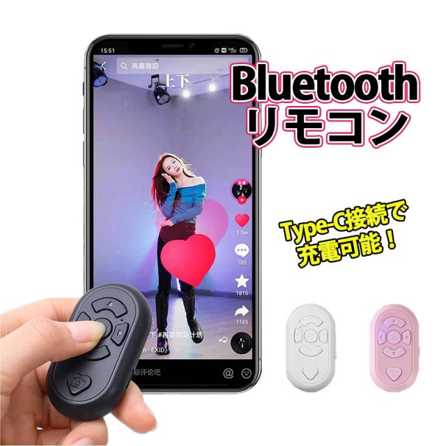 Bluetoothリモコン スマートフォン タブレット用 自撮りシャッター スマホ遠隔操作可能 電子書籍フリップ Tik Tok ティックトック バッテリー内蔵 ブラック ホワイト ピンク【送料無料】