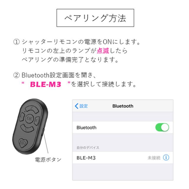 | スマホ リモコン Bluetooth ブルートゥース 遠隔操作 写真撮影 スマホ操作 iPhone Android アイフォン アンドロイド アプリ シャッター 動画 3カラー ブラック ホワイト ピンク リモコン操作 |
