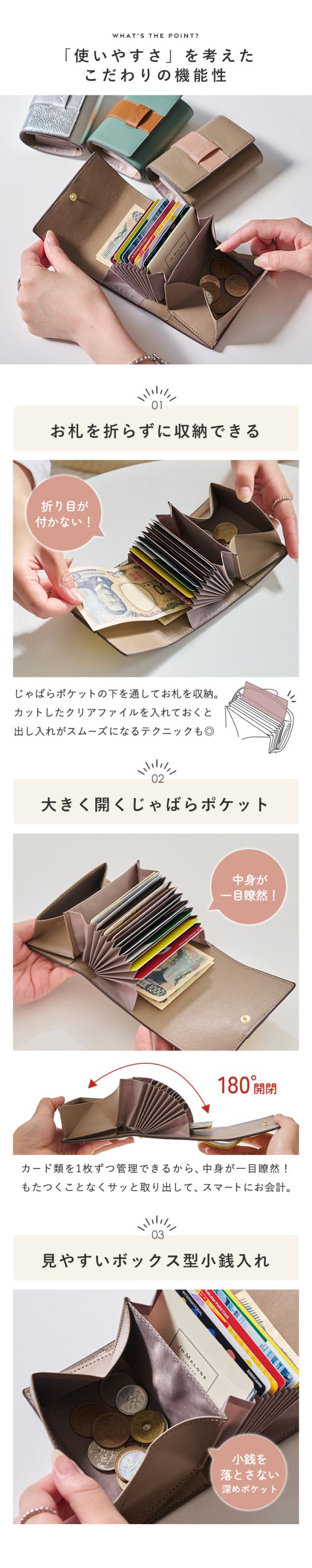 「コンパクトなのにたっぷり収納できる」 大人気のじゃばらポケット仕様のお財布から 当店オリジナルのベルトデザインとこだわりの配色が可愛いミニ財布が新登場! 180°大きく開くカード収納に、ボックス型の小銭入れ、下側にはお札を折り曲げずに収納できるスペースもあり、ミニサイズながらしっかり大容量◎ 身近な犯罪から守るスキミング防止機能搭載。 クレジットカードやキャッシュカードも安心して持ち運べます。 全色こだわりのトップレザーを使用。豊富なカラバリ全17色。 あなたにぴったりなお気に入りのカラーがきっと見つかるはず! |