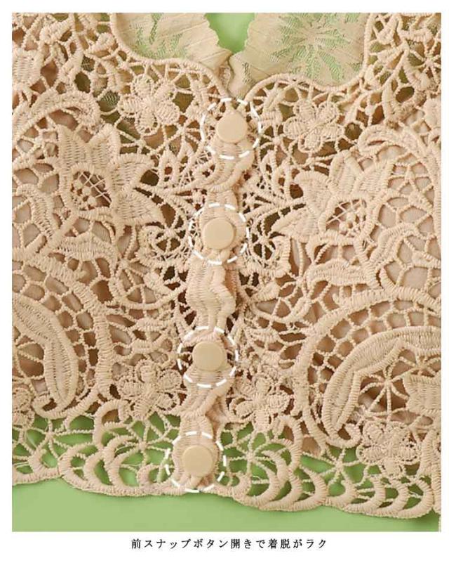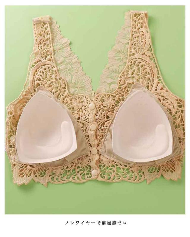 | フロントボタンの優しいノンワイヤーブラ よく伸びてやわらかくフィットし、締め付け感がなく優しいつけ心地 縫い目が気にならないシームレスタイプ ノンワイヤーで窮屈感ゼロ 前スナップボタン開きで着脱がラク 幅広ストラップで自然なつけ心地 脇高設計でバストを安定 大人の女性の色っぽさと美しさを引き立たせる全面レース仕様で通気性に優れ蒸れにくい! ノンワイヤーだから圧迫感もなく長時間の着用でも痛くない!苦しくない! 普段使いはもちろん、ナイトブラとしても快適に使用していただけます | |