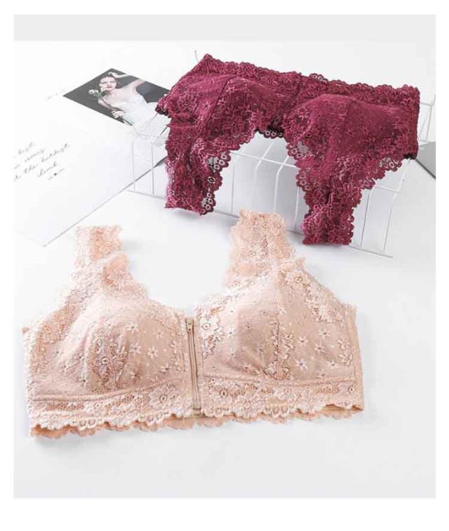 乳がん専用 フラワーレース ノンワイヤー ブラジャー 下着 ノンワイヤーブラ 前ジッパー 術後 入院 乳ガン インナー 前開き 乳癌 ストレッチ性 ブラジャー 乳がん専用 取外し可能パッド 通気性 お洒落