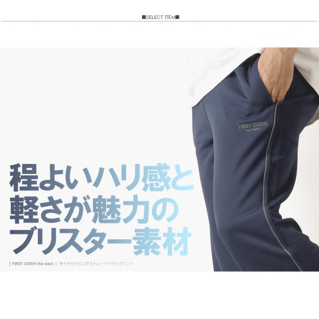 ファーストダウン トラックパンツ メンズ ブリスター素材 ストレート ジャージ サイドパイピング ワンポイントロゴ 刺繍 シンプル 【RI2-1475】 送料無料 通販A3
