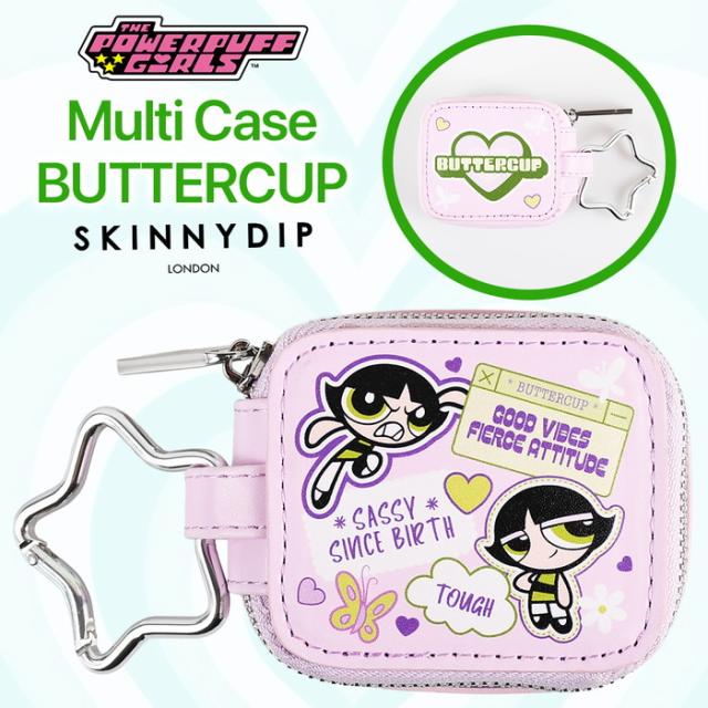 パワーパフガールズ バターカップ ライラック ラメ グリッター キラキラ 合皮レザー イヤホンケース 汎用 ワイヤレスイヤホン AirPods Pro AirPods 第3世代 第2世代 第1世代 対応 キャラクター グッズ かわいい おしゃれ カラビナ付き スキニーディップ 正規品
