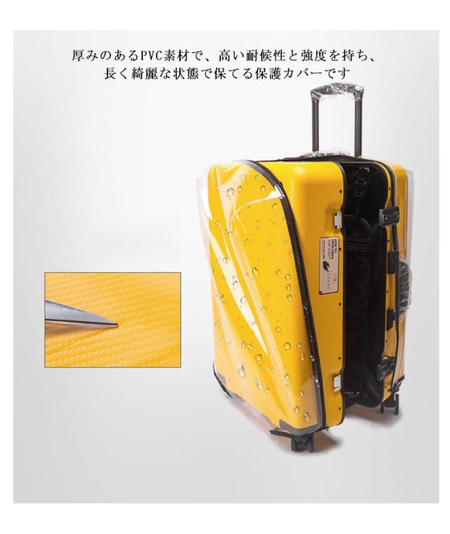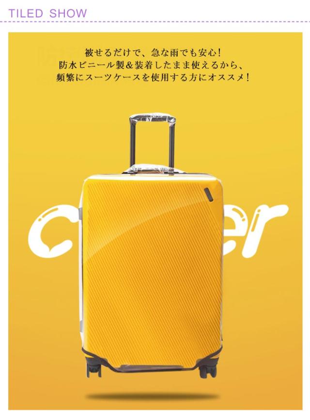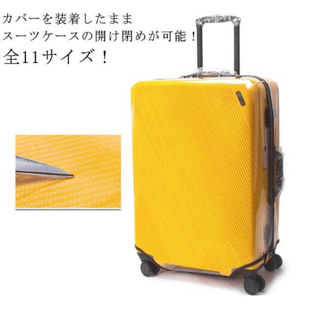 | 全11サイズ!カバーを装着したままスーツケースの開け閉めが可能! ファスナー付きなので、装着したままスーツケースを開け閉めできるから、擦り傷やホコリから守りながら、ご利用に邪魔にならないからとっても便利。 被せるだけで、急な雨でも安心!防水ビニール製&装着したまま使えるから、頻繁にスーツケースを使用する方にオススメ! 厚みのあるPVC素材で、高い耐候性と強度を持ち、長く綺麗な状態で保てる保護カバーです 底部は幅広マジックテープでしっかりと固定されています | |