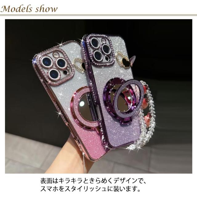 | iPhone17/iPhone16ケース 耐衝撃 カメラ保護 magsafe対応 ケース本体さー体された立体ボタンテザイン。 表面はキラキラときらめくデザインで、スマホをスタイリッシュに装います。 レンズの周りをケースで覆うことで保護力UP! 身だしなみチェックに便利なミラー付き。 リング付き。スタンドとして使用できるので、動画視聴に便利です | |