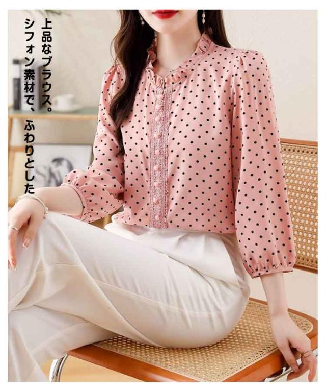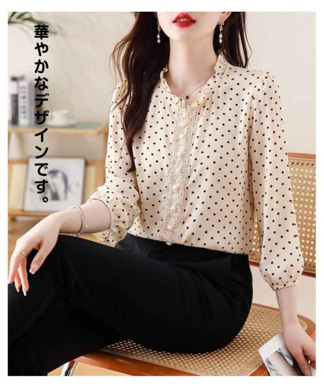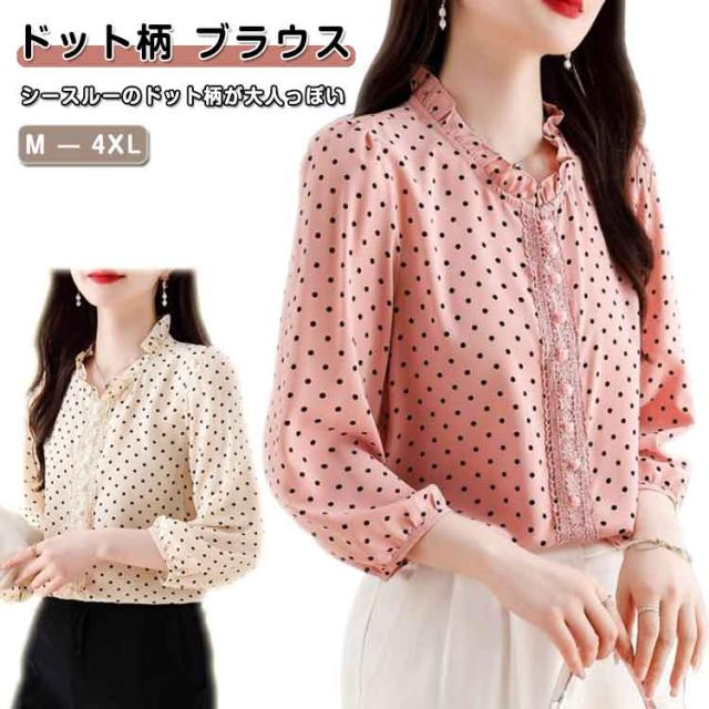 シャツ とろみシャツ シフォン 上品 ブラウス トップス レディース シャツ ブラウス シャツブラウス 着痩せ 大人 ドット柄 フォーマル 長袖 通勤 OL きれいめ オフィス シンプル かわいい 可愛い 春 秋 大きいサイズ 30代 40代 50代