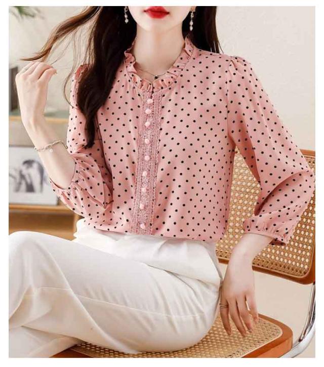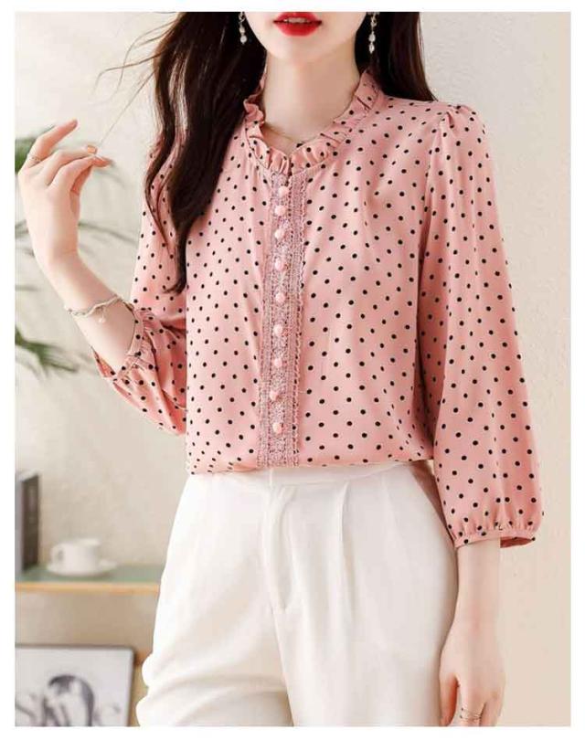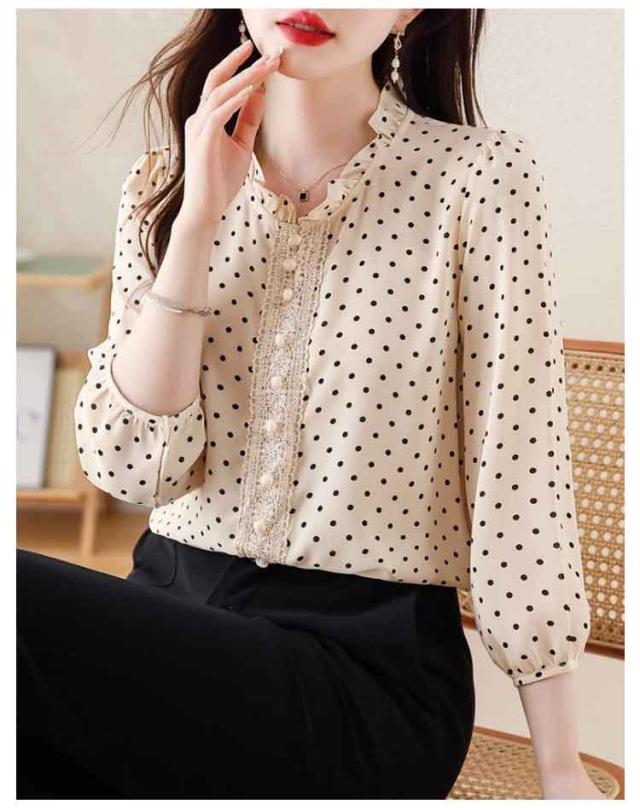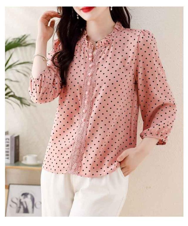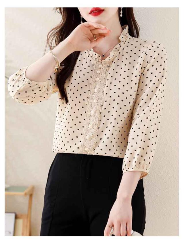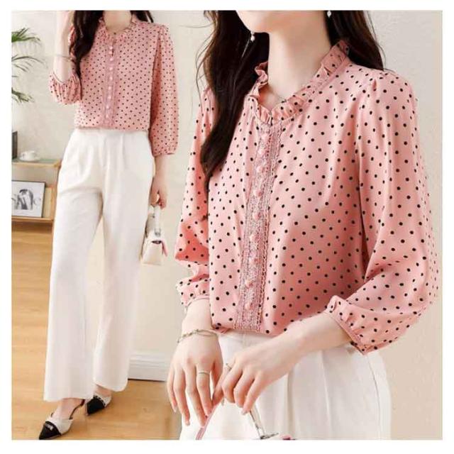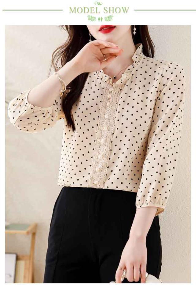 | ドット柄 ブラウス シースルーのドット柄が大人っぽい 上品なブラウス。 シフォン素材で、ふわりとした 華やかなデザインです。 洗練されたスタイルに おすすめのアイテム。 | |