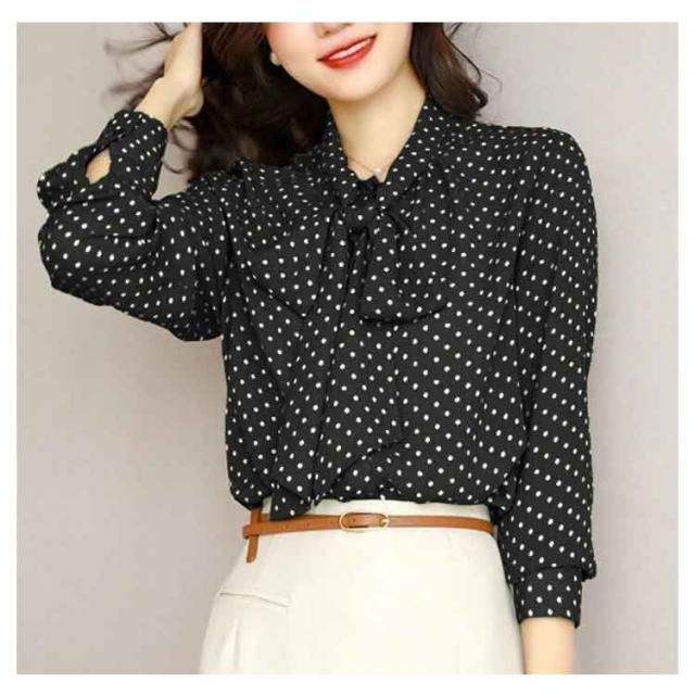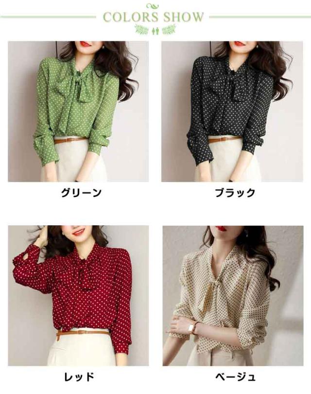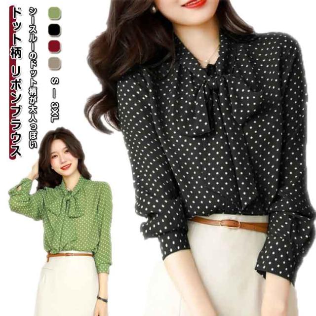 水玉模様 秋 ドット柄 トップス ドット柄 レディース オフィス 大人 リボンブラウス ゆったり シャツブラウス ブラウス シフォンブラウス おしゃれ 春 30代 40代 50代 60代 きれいめ 着やせ エレガント おしゃれ 可愛い 二次会 同窓会 女子会