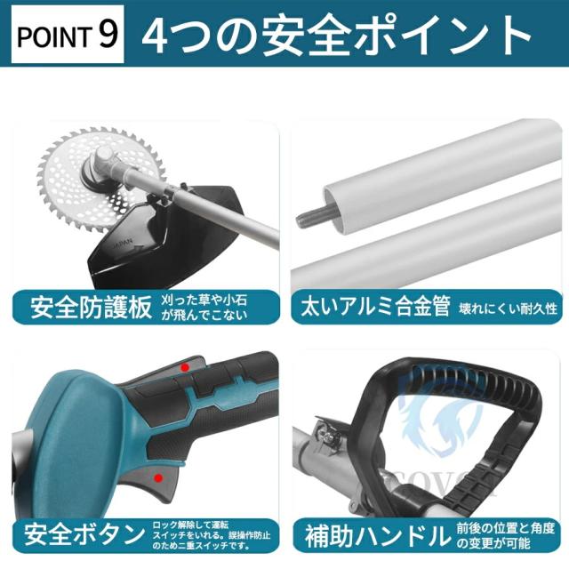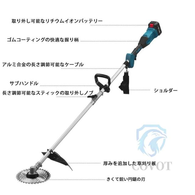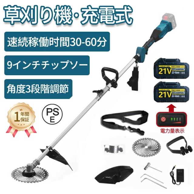 草刈り機 充電式 電動 草刈機 9インチ バッテリー 刈払機 肩掛け付き 替刃付き 女性 21v コードレス 多機能 電動 ンランレスモーター 電動刈払機 枝切り 軽量 芝刈り機 安全 無線 電動刈払い機 畑