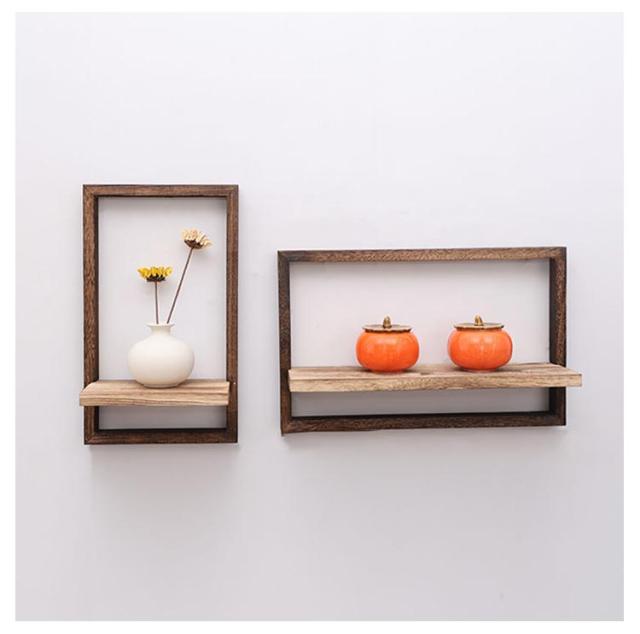 ラック ウォールラック ウォールシェルフ 木製 フレーム 枠付き アンティーク 浮かせる 天然木 収納ラック 飾り棚 おしゃれ 北欧 2個セット 壁 リビング 玄関 店舗 ディスプレイ 壁掛け 壁飾り 壁面収納 収納棚 シェルフ 2個セット 壁掛けラック 壁掛け棚