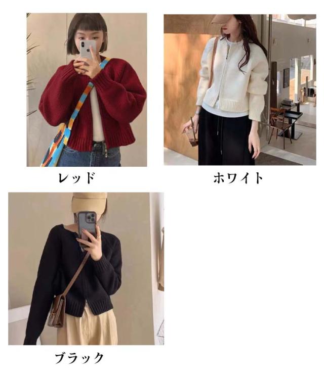 ニット 羽織り ブルゾン 羽織り ライトアウター レディース カーディガン カーディガン ニットカーディガン ショート丈 ジップアップ ブルゾン クルーネック ニット 長袖 ジッパー 羽織もの 春秋 無地 アウター コーデ 前開き