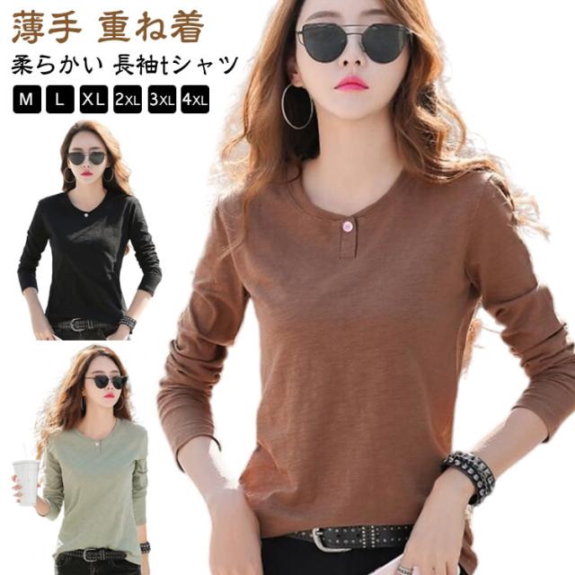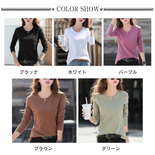 ロングTシャツ 長袖Tシャツ カットソー カットソー レディース Tシャツ トップス ティーシャツ レイヤード 長袖tシャツ 細見え Tシャツ 重ね着 薄手 ロンティー ブラック ホワイト パープル ブラウン