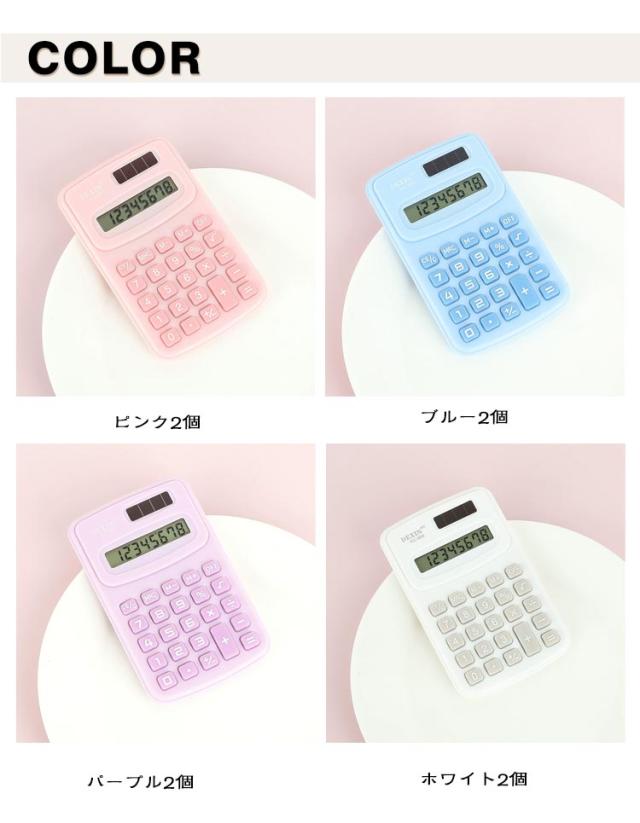 ミニ 8桁 携帯電卓 軽量 小型 学生用 電卓 文房具 ミニ 薄型 かわいい おしゃれ パステルカラー オフィス 【2個組】ミニ 持ち運びしやすい ボタン電池式 事務用品 電子文具 雑貨