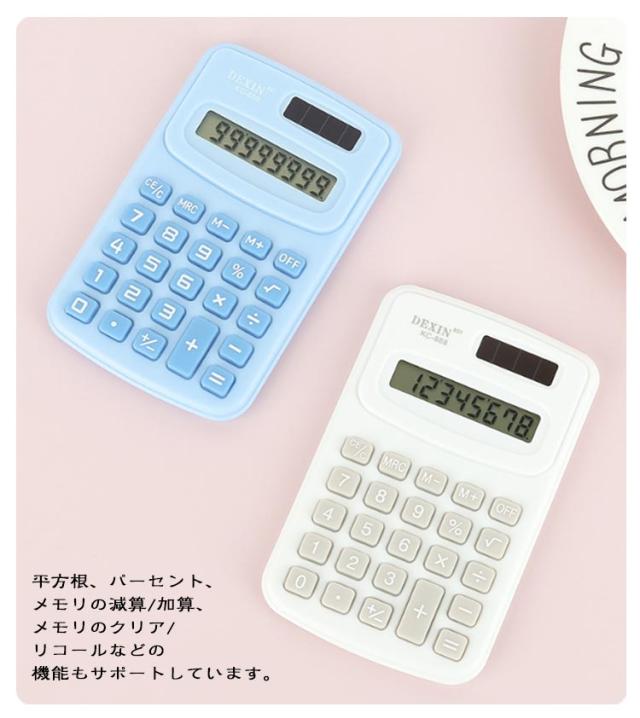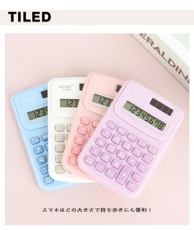 | 【持ち運び】【8桁 】【ミニ携帯電卓】 スマホほどの大きさで持ち歩きにも便利! おしゃれかわいいパステルカラーのミニ電卓。 平方根、パーセント、メモリの減算/加算、メモリのクリア/リコールなどの機能もサポートしています。 薄型のコンパクトデザインでバッグに入れて携帯便利。 | |