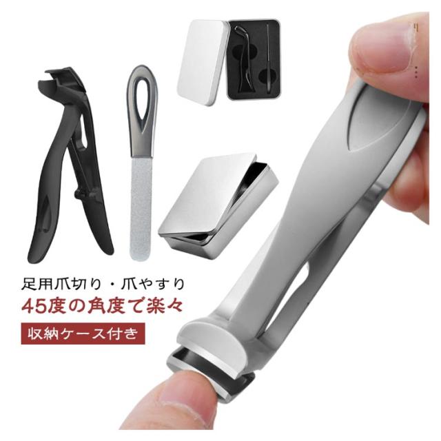 厚い爪 足用爪切り 爪切り つめやすり 巻き爪 足用 鉄製ケース付き 爪やすり ステンレス ニッパー 45度の角度で楽々 高齢者 介護 妊婦 飛び散り防止 ネイルクリッパー ネイルケア ステンレス 水洗い可 軽量 爪切り 男女兼用 プレゼント