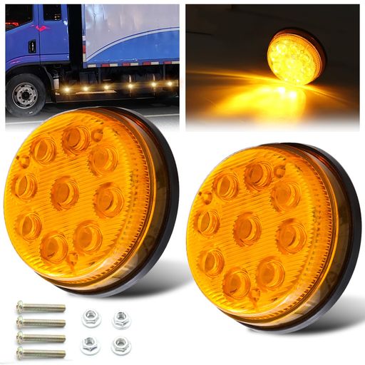 YGMYLANDBB LED トラック サイドマーカーランプ 路肩灯 車幅灯 24V 12V 9連LED 側灯 トラック トレーラー デコトラ 高輝度 防水 黄色光(ハイライトとローライト)丸型 2個セット
