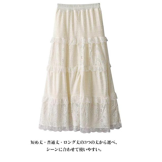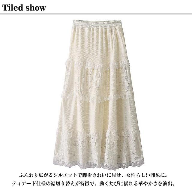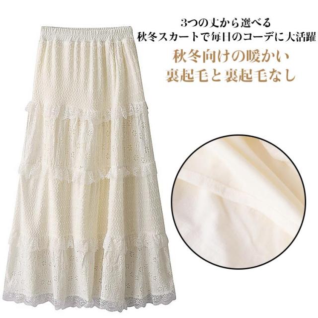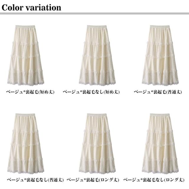 ティアードスカート 裏起毛なし 秋冬 ベージュ 裏起毛 暖かい デートコーデ レーススカート ふんわり 大人可愛い ハイウエスト レディース お出かけ フェミニン かわいい 通勤 ナチュラル きれいめ 体型カバー トレンド