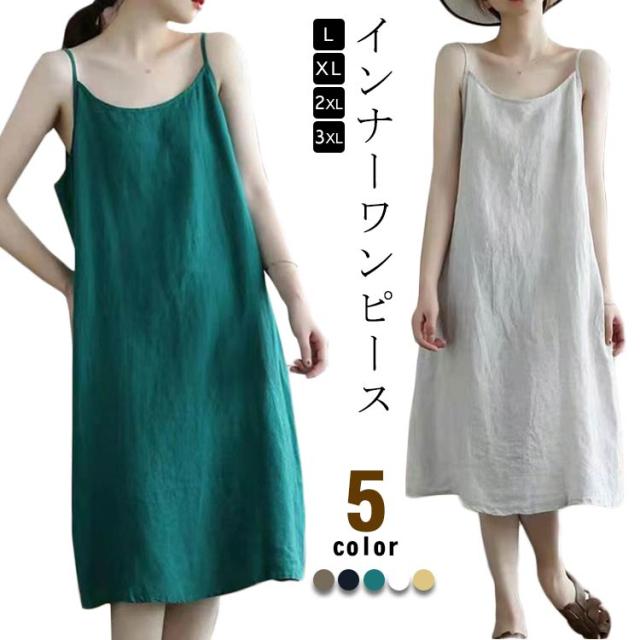 キャミソールワンピース 夏 キャミソールワンピース インナー ペチコート 無地 春 レディース 部屋着 キャミワンピース 綿麻調 ゆったり ワンピース スリップ インナーワンピース ルームウェア カジュアル ナチュラル コットン 透け防止 ロング