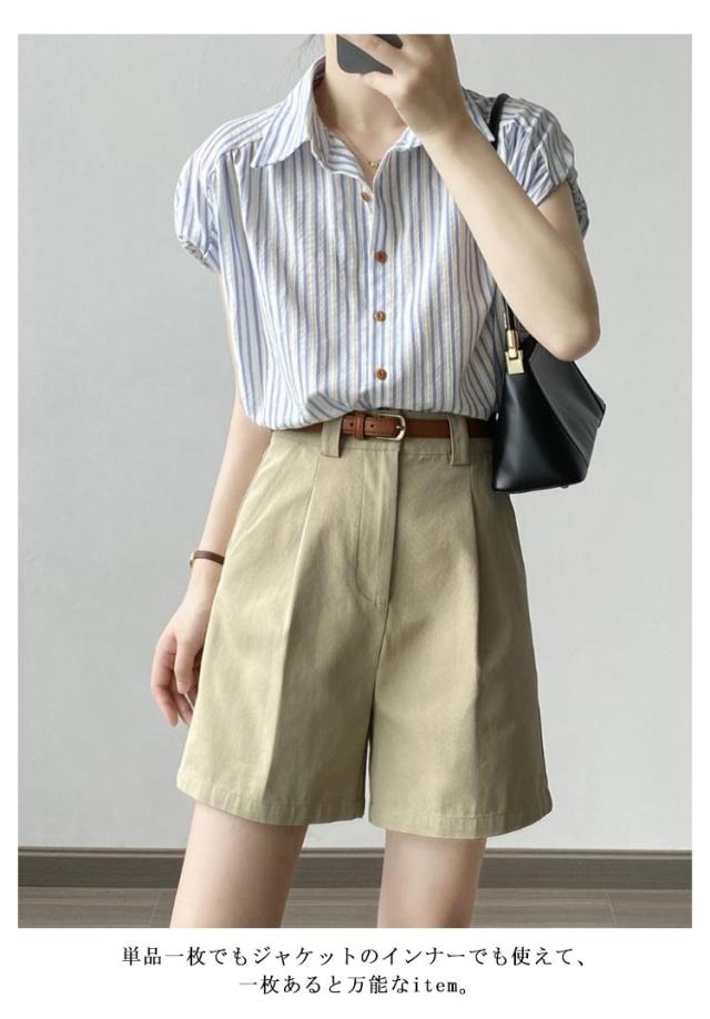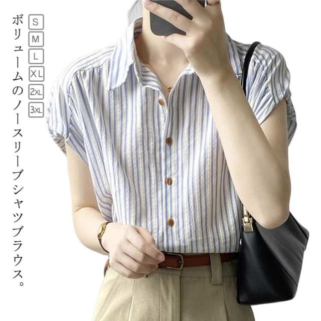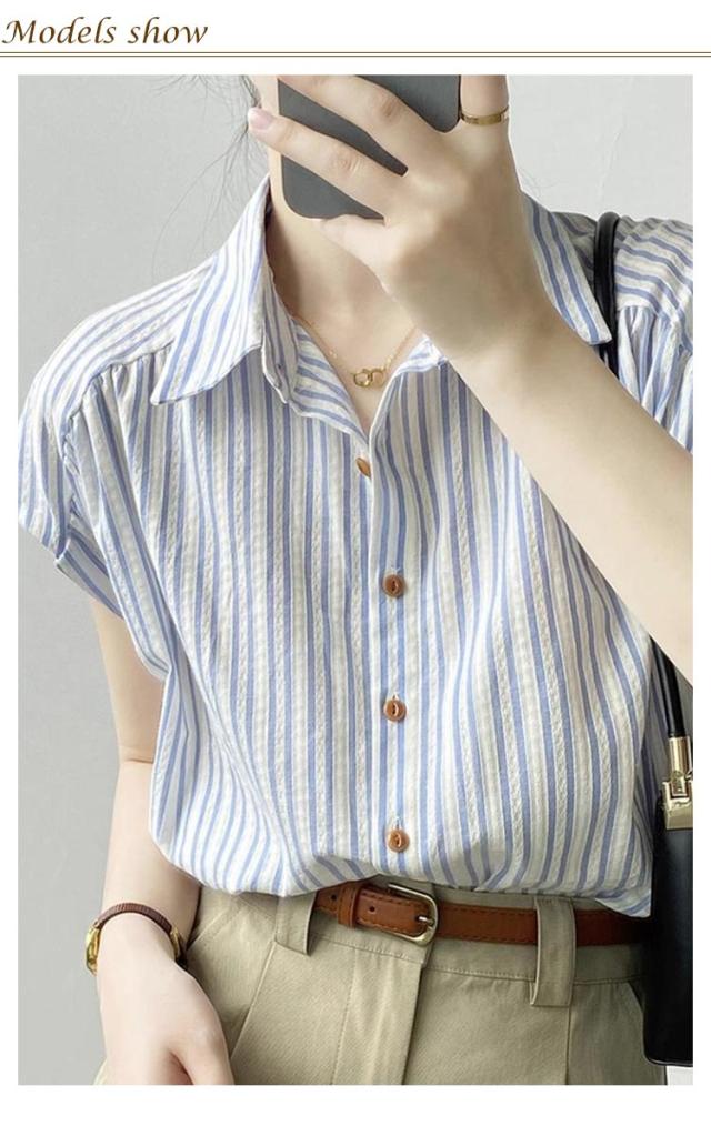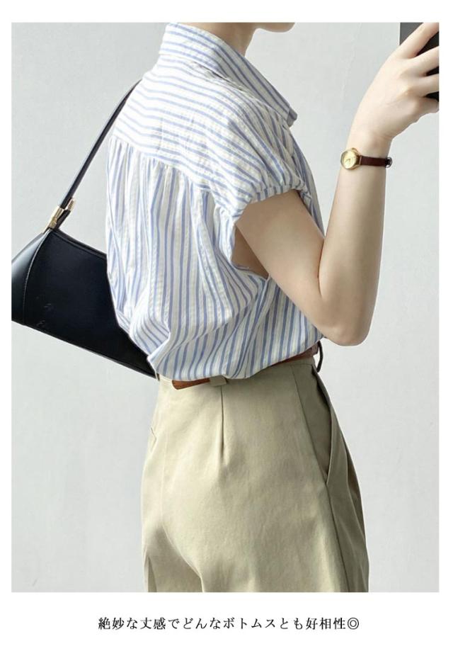 シャツ 夏服 レディース 体型カバー トップス フレンチスリーブ 春夏 ストライプ 袖なし オフィス 通気 きれいめ かわいい 可愛い 前開き 春 夏 半袖シャツ ゆったり ルームウェア 薄手 リラックス シンプル