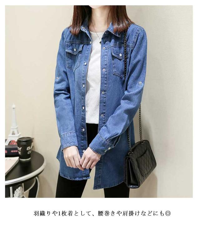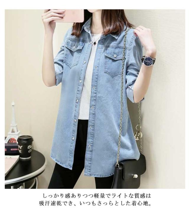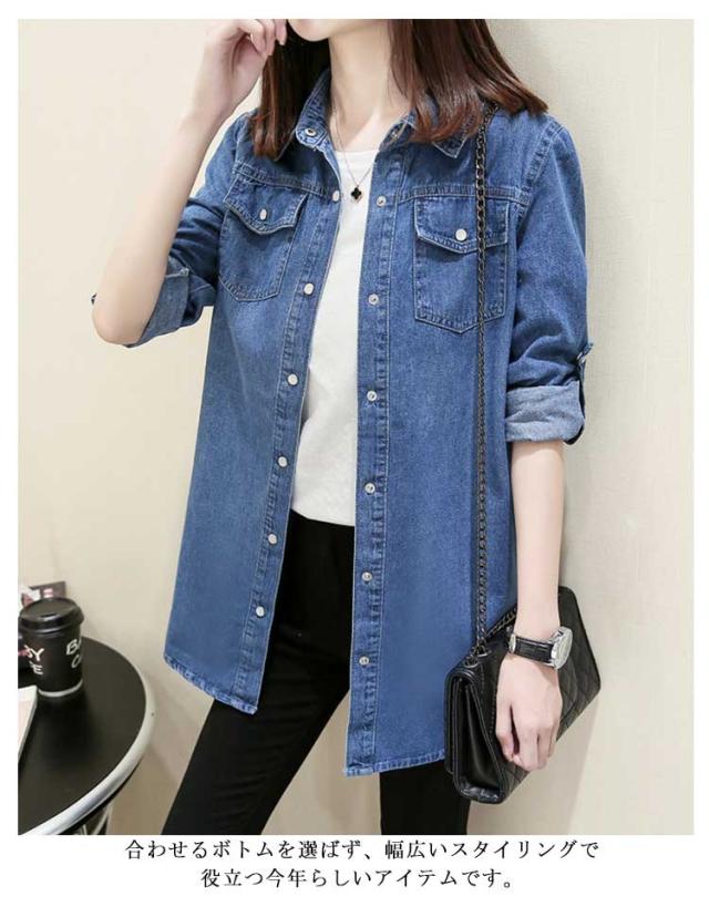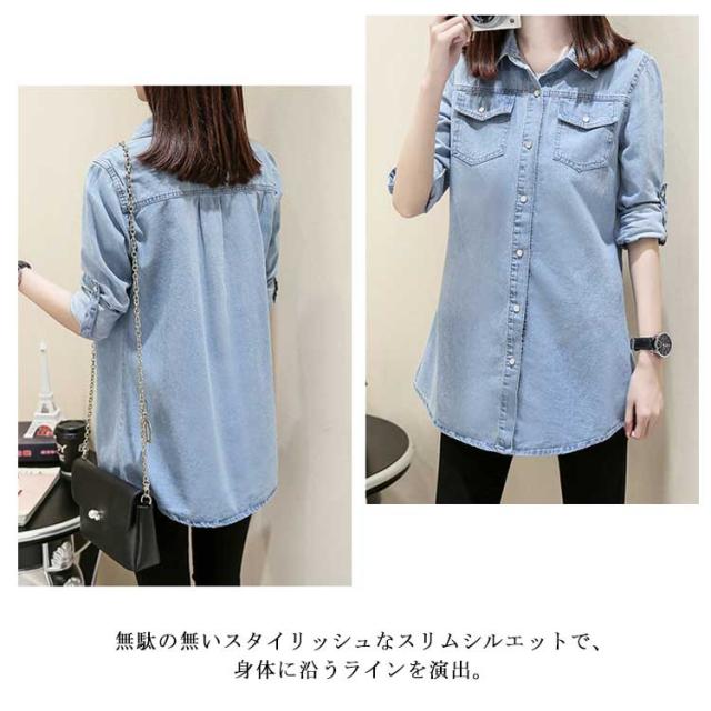 長袖 デニムシャツ ダンガリーシャツ トップス デニム レディース シャツ ブラウス デニムブラウス 長袖 シャツ カジュアル ロールアップ 着痩せ デニムブラウス シンプル カジュアル 韓国ファッション おしゃれ 春服 秋服