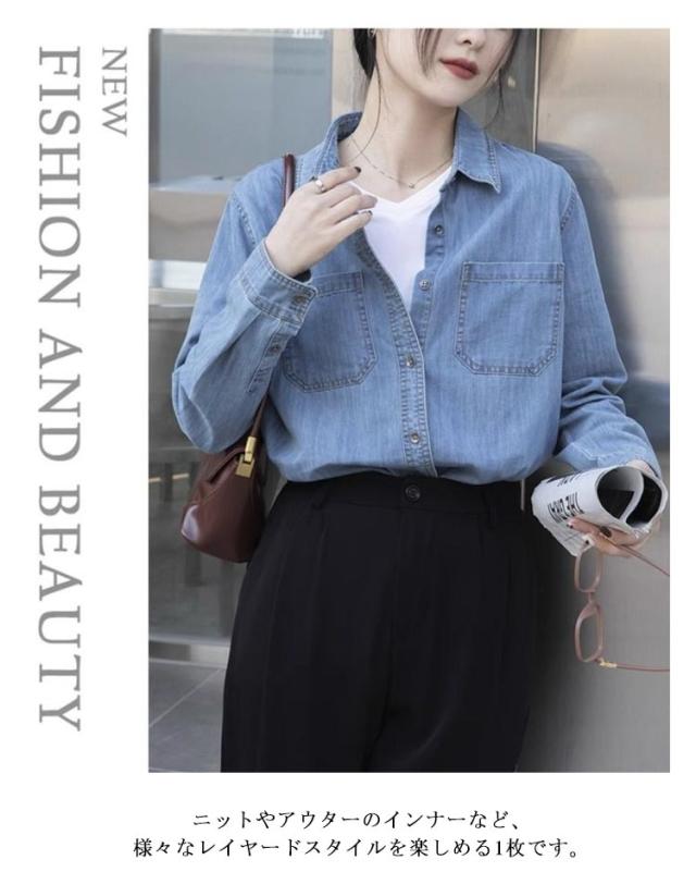 ダンガリーシャツ ブラウス デニムシャツ 春服 サックス デニムシャツ トップス 秋服 アウター シャツ 長袖 ブラウス デニム ウォッシュ加工 ウエスタンデニム ウエスタンシャツ ブルー 春 カジュアル シャツ おしゃれ 可愛い