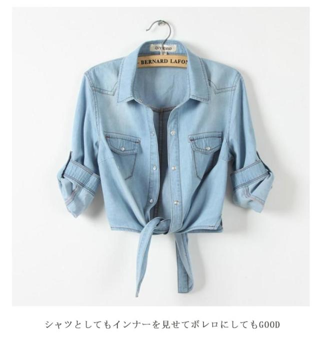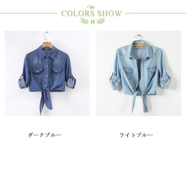 大人 ブラウス 5分袖 長袖シャツ シャツ 長袖 デニムシャツ 半袖 前縛り シャツ トップス ショート丈 ロールアップ カジュアル レディース 前結びシャツ 薄手 韓国ファッション おしゃれ 春服 秋服