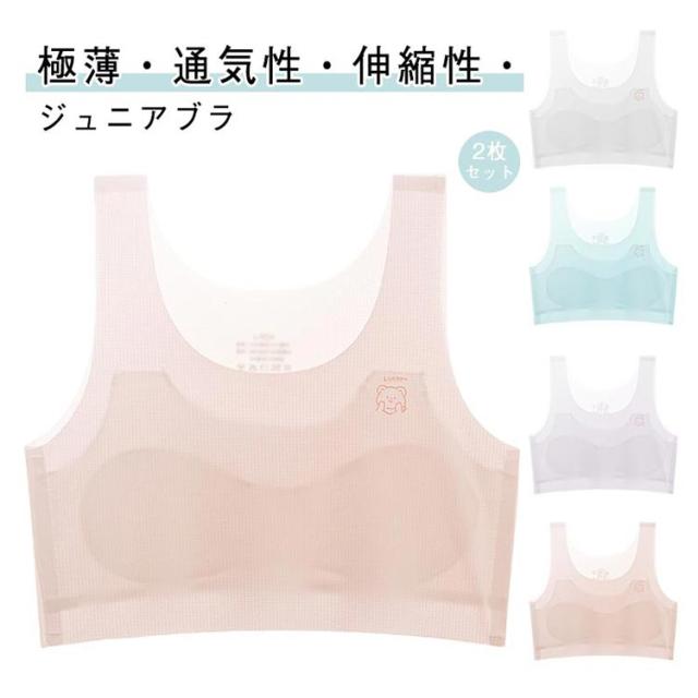 ジュニア 下着 夏 ファーストブラ 2枚セット ジュニアブラジャー 薄手 ブラ 高校生 シムレス ジュニアブラジャー 春秋 可愛い 夏用 女の子 中学生 肌着 女子 ファーストブラジャー ベストタイプ 大きいサイズ キッズ インナー ブラジャー 快適 無地 シンプル かわいい