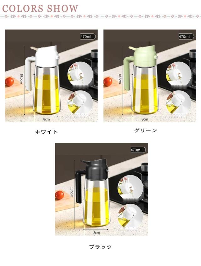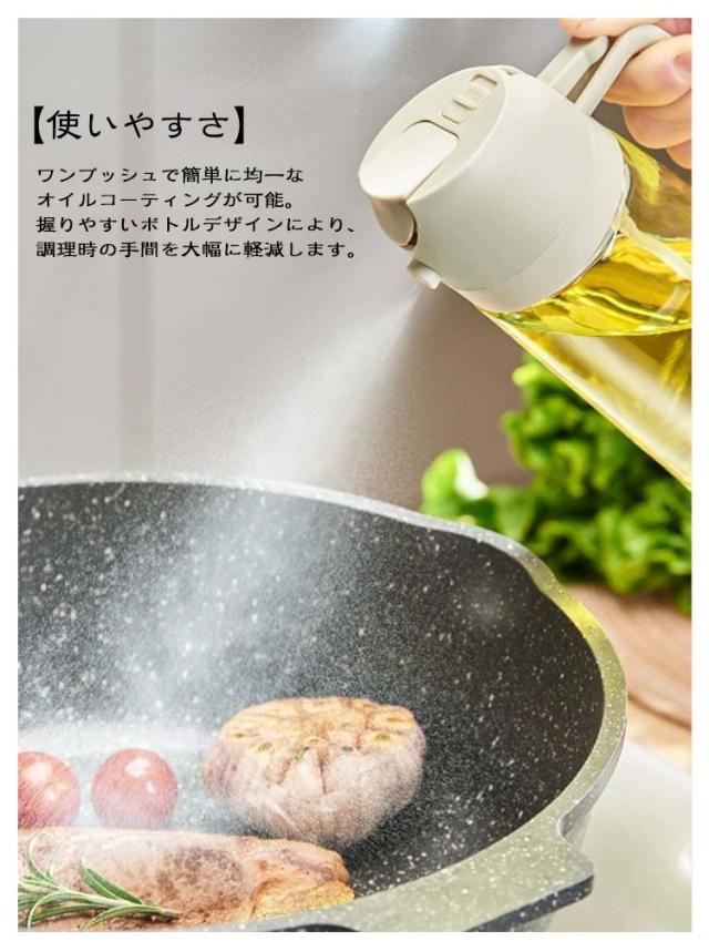 | 使いやすい、漏れないから安心オイルスプレー 【使いやすさ】ワンプッシュで簡単に均一なオイルコーティングが可能。握りやすいボトルデザインにより、調理時の手間を大幅に軽減します。 【液だれしない設計】独特の設計により、オイルが液だれすることなく、必要な量だけを正確にスプレーします。本体もキッチンも汚さずストレスフリー。 【耐熱ガラスボトル】耐熱性と耐衝撃性に優れたガラス製のボトル。透明度アップでキッチンがより美しく、使いやすさも抜群。調理器具のそばでも安心して使用できます。 【オイルを最後まで使い切る設計】吸引ストローがボトルの端にあるため、オイルを最後まで使い切ることができます。また、古い油と新しい油が混ざる心配もありません。 【様々な用途に対応】サラダからオムレツ、ステーキ、エアフライヤーまで、幅広い料理に対応。キッチンでの料理作りをより楽しく、便利にします | |