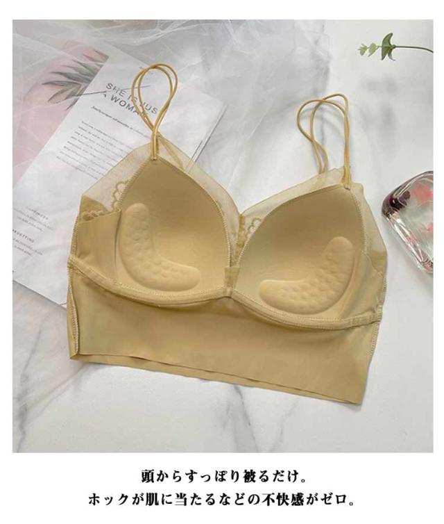 | 寝ている間もバストを優しくホールド。デザインも可愛らしいレースブラトップ。 透け感のあるトップスや羽織りに仕込むだけで、インナー見えせずおしゃれにキマる! 窮屈感感が苦手な方に嬉しいノンワイヤー仕様◎ストレッチ性もあり、自分サイズにフィット。 バストの揺れを抑えて横流れを防止する脇高設計。細めのストラップで、後ろ姿も美しく♪ 頭からすっぽり被るだけ。ホックが肌に当たるなどの不快感ゼロ&長さ調節できるストラップ付。 通気性に優れたレース素材で、汗ばむ季節もムレにくい!いつでも快適な付け心地。 女の子らしい4色揃いで色違いもオススメです。 | |