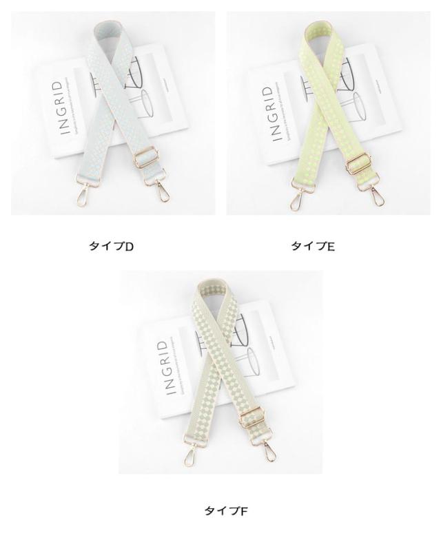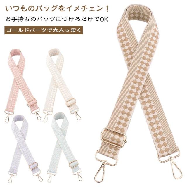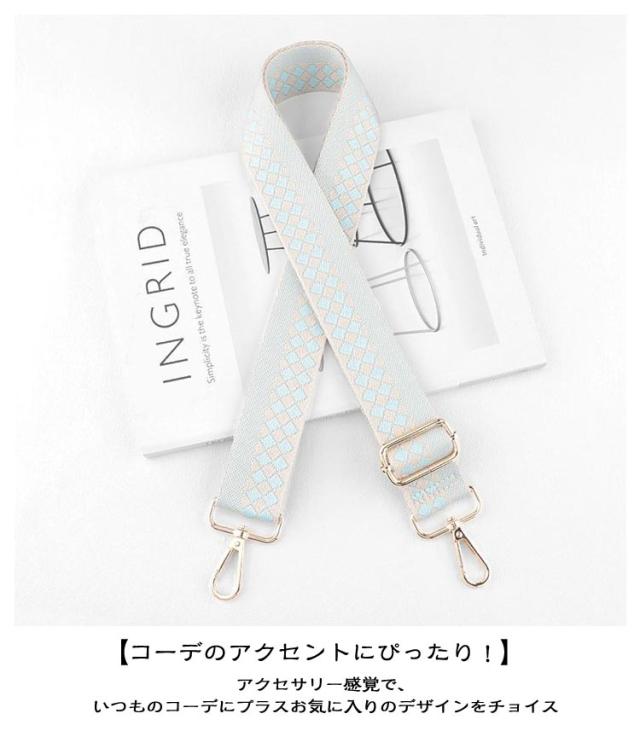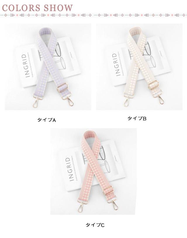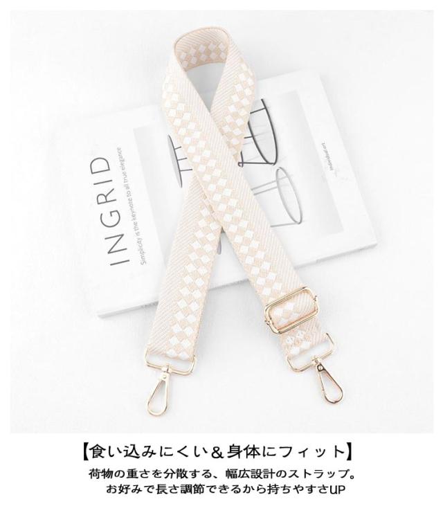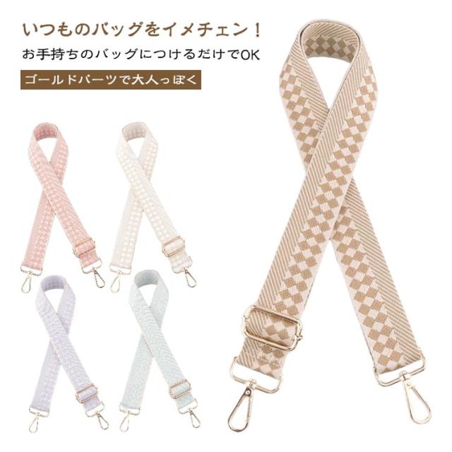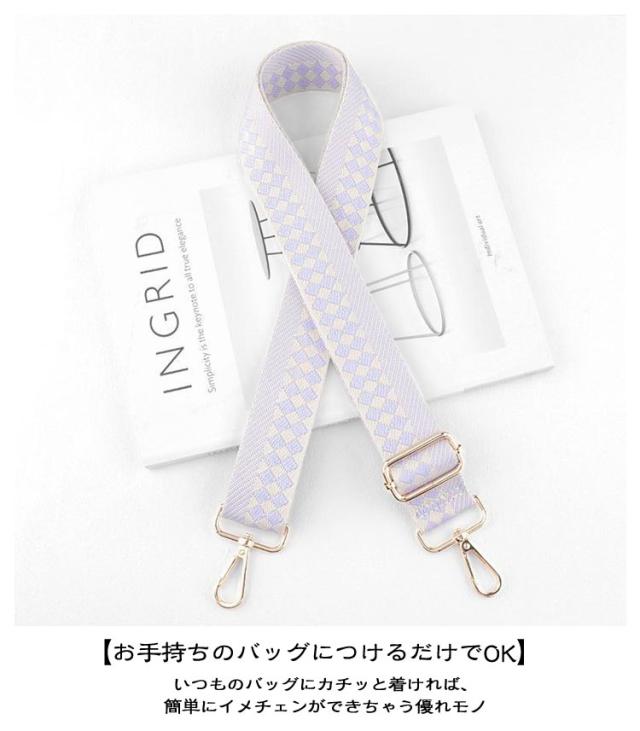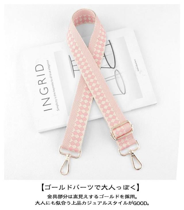 | いつものバッグをイメチェン!】 ・付け替えるだけのお手軽さがGOOD♪ 「ショルダーストラップ」が登場。 【お手持ちのバッグにつけるだけでOK】 ・いつものバッグにカチッと着ければ、簡単にイメチェンができちゃう優れモノ☆ 【食い込みにくい&身体にフィット】 ・荷物の重さを分散する、幅広設計のストラップ。お好みで長さ調節できるから持ちやすさUP◎ 【ゴールドパーツで大人っぽく♪】 ・金具部分は高見えするゴールドを採用。大人にも似合う上品カジュアルスタイルがGOOD。 【コーデのアクセントにぴったり!】 ・アクセサリー感覚で、いつものコーデにプラス☆お気に入りのデザインをチョイス | |