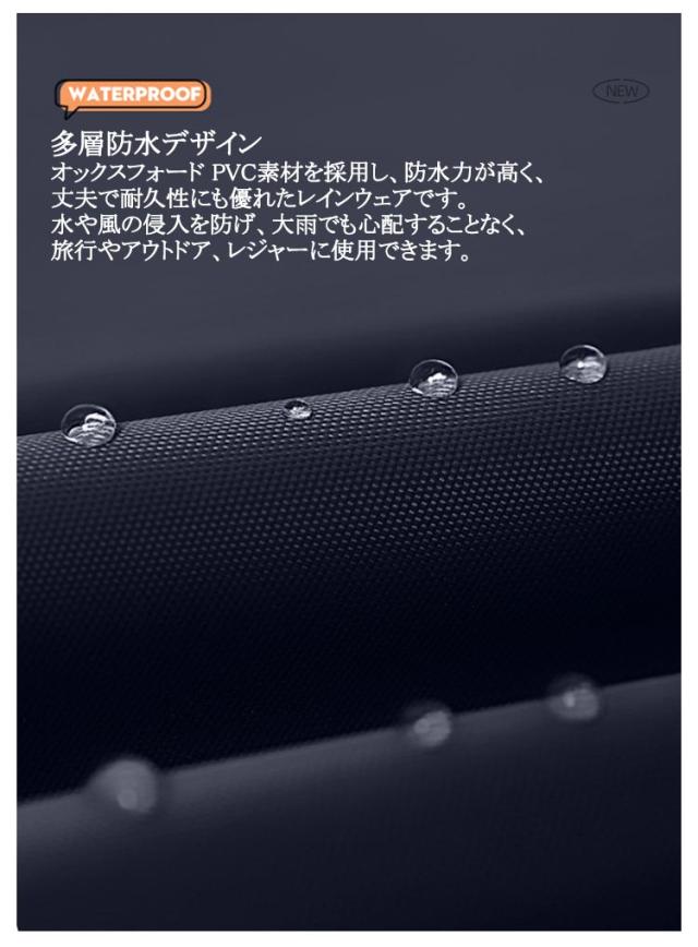 | 男女兼用の自転車用レインコート。 【大きいサイズレインコート】自転車、リュックに対応可能な男女兼用のレインコート。膝下までカバーするロング丈、体がしっかり覆われ、レインブーツを履けば足元まで濡れない、全身を雨から守ることができます。 【多層防水デザイン】オックスフォード PVC素材を採用し、防水力が高く、丈夫で耐久性にも優れたレインウェアです。水や風の侵入を防げ、大雨でも心配することなく、旅行やアウトドア、レジャーに使用できます。 【ファッション&多用途】毎日お気楽に過ごせます。適用範囲も広く、通勤や通学、保育園、幼稚園の送迎、防災用、スポーツ観戦、お散歩、自転車用、アウトドア、釣り、作業、登山、ゴルフ、除雪作業などの様々な場合に適用しています。春夏秋冬、一年間にご使用いただけるレインコートです。 | |