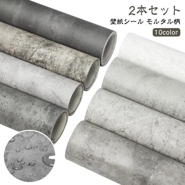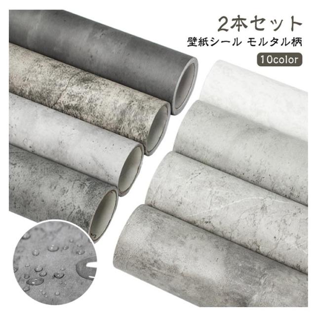 貼ってはがせる 2本セット 長さ3M幅0.6M 張り替え おしゃれ シャビーシック モルタル柄 防水 壁紙 リメイクシート クロス のり付き コンクリート 石目調 ヴィンテージ アンティーク調 インダストリアル