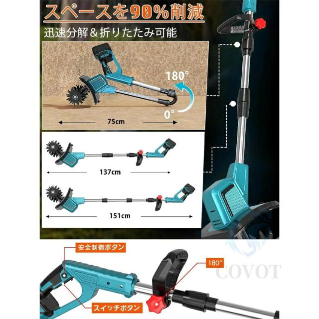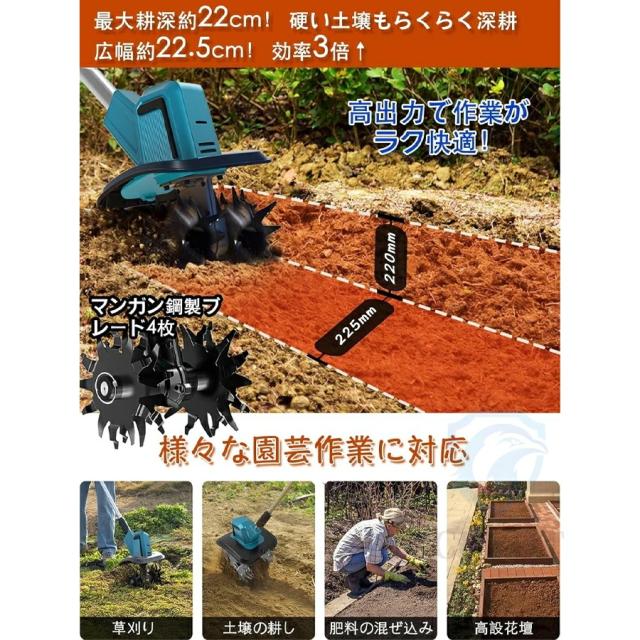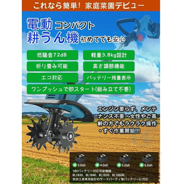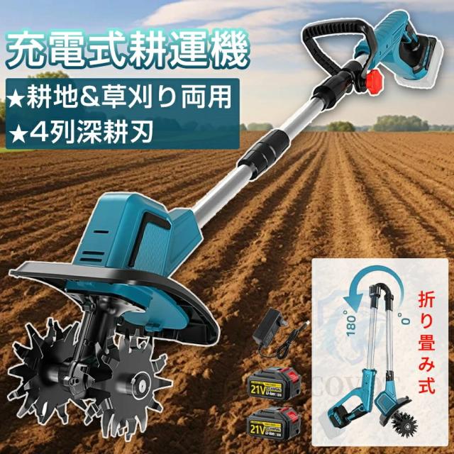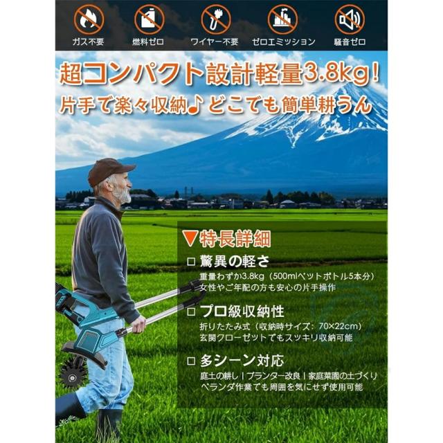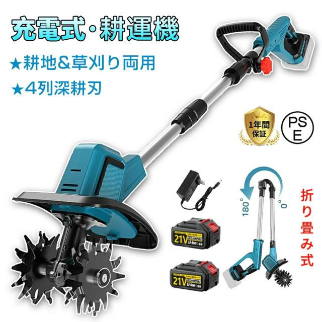 電動耕運機 充電式耕うん機 ミニ耕運機 耕運機 充電式 家庭用 小型 種まき機 4枚刃 伸縮可能 折りたたみ可能 強力 小型耕運機 耕うん機 コードレス 耕運幅300mm 耕運深さ220mm 18vバッテリー交換 耕す 畑 菜園 農機具 園芸用品 1年間保証 PSE認証