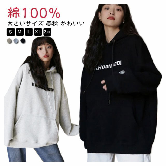 綿100% トレーナー レディース おしゃれ パーカー レディース ゆったり コットン プルオーバー ビックサイズ トップス ドルマン オーバー フード スウェット 秋 大きいサイズ