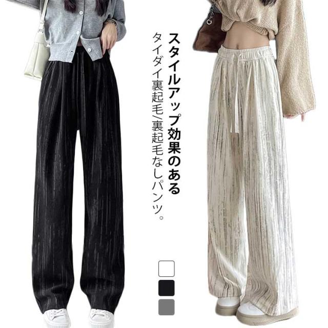 体型カバー 裏起毛ワイドパンツ 美脚 レディース 裏フリース オシャレ 冬 ガウチョパンツ 防寒パンツ ストライプ 暖かい ロング パンツ 冬 タイダイ 暖パン 秋 イージーパンツ 裏起毛パンツ 通勤 痩せ 防寒 ゴルフ 釣り 20代 30代 40代