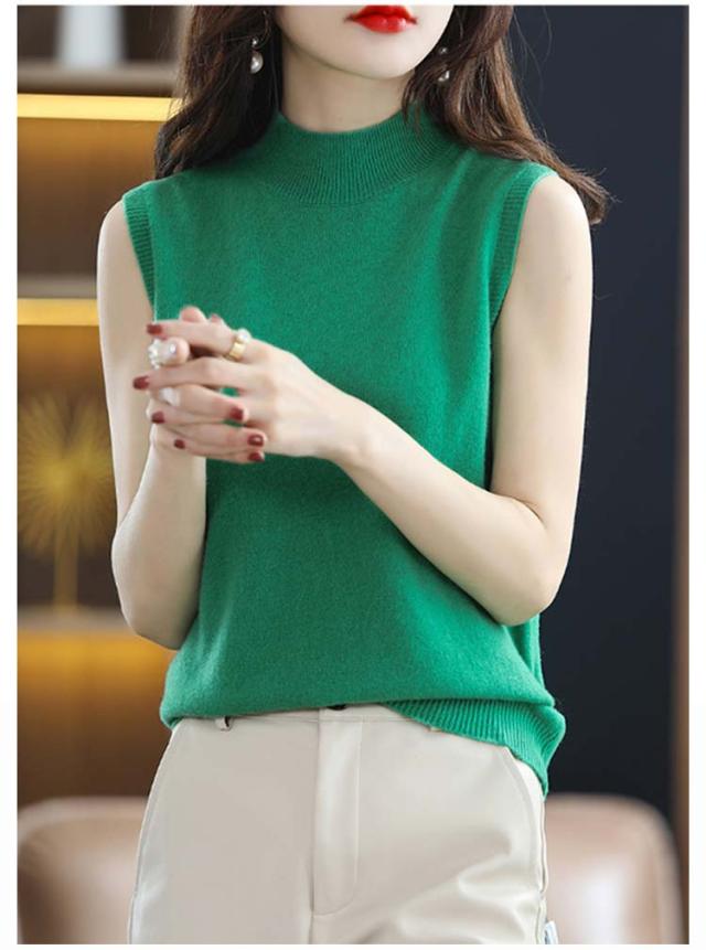 大人 ハイネック ニット カットソー プルオーバー ニットタンクトップ ニットベスト 洗えるニット サマーニット 無地 オフィスカジュアル タートルネック インナー ニットセーター レディース おしゃれ 春 ニットソー 母の日 夏 ノースリーブ 秋