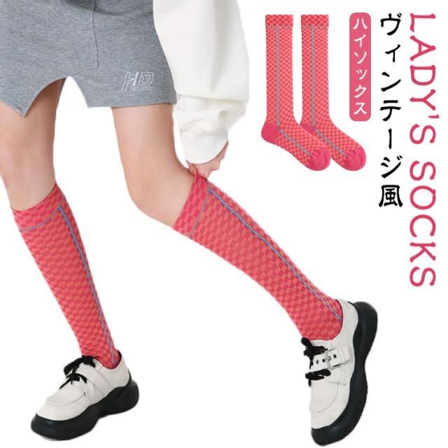 靴下 ひざ下 ソックス 靴下 レディース 靴下 チェック柄 ヴィンテージ風 レディース靴下 北欧 レトロ ひざ下丈 ポップ ハイソックス 春用 夏用 秋用 冬用 靴下 ひざ下丈 ソックス ロングソックス ソックス 靴下 ロング おしゃれ ソックス 靴下