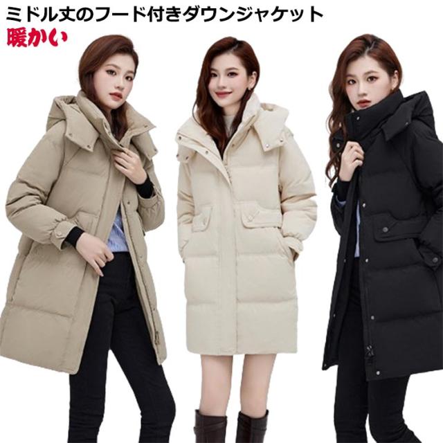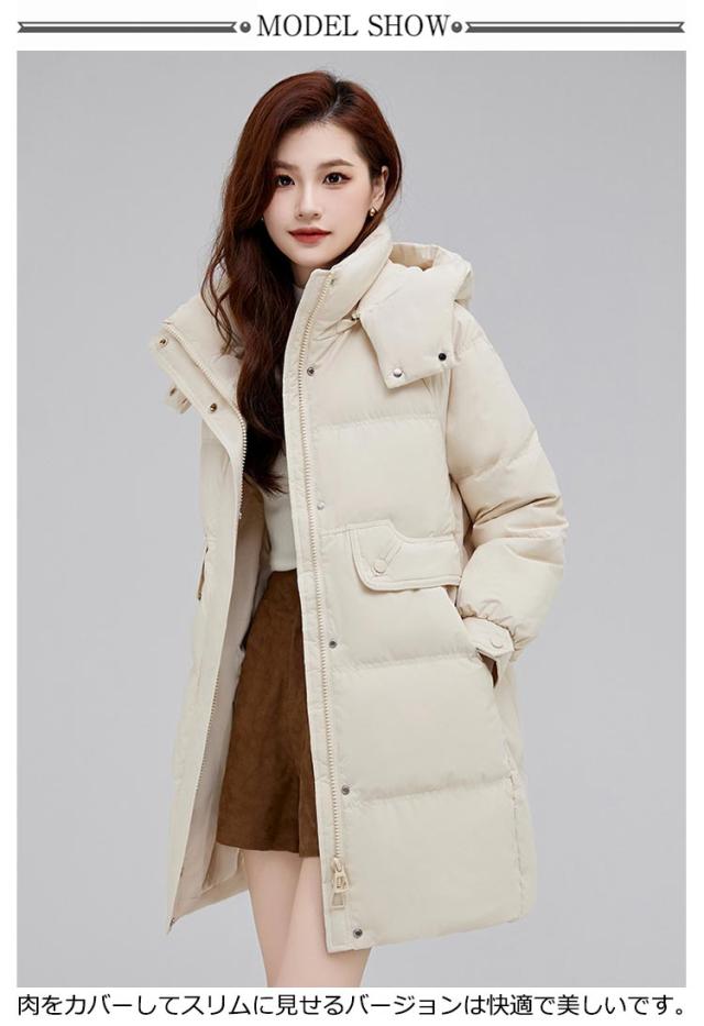 冬 防寒 レディース ダウンジャケット ベンチコート ポケット付き コート ロングコート ファー付き 大きめポケット 秋 冬 アウター ジャンパー 前開き あったか 厚手 暖かい ダウンコート